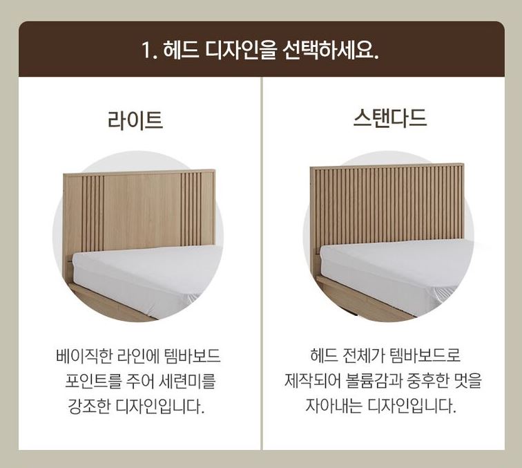 제가 구입하게 된건 장인가구의 로시 라이트 템바보드 호텔식 침대 입니다. 색상은 오크예요.